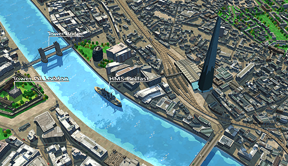 Working with eeGeo we developed our amazing 3D city building technology; an engine and pipeline that allows us to create and display living, breathing representations of real world cities on iPhone, iPad and Android devices.